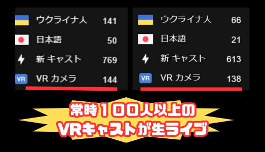 海外サイトでは常時100名以上のVR配信キャストが生ライブしていますが、日本人キャストのVRがお目当ての方は、今後に期待するしかなさそうです。