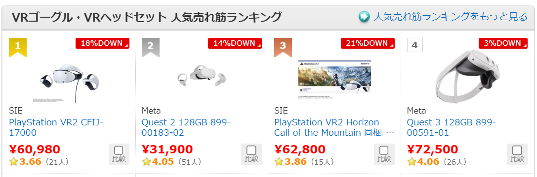 すでに持っているよ!っという人は少ないと思うので、参考に価格ドットコムの売れ筋ランキングを見てみるとこんな感じです。